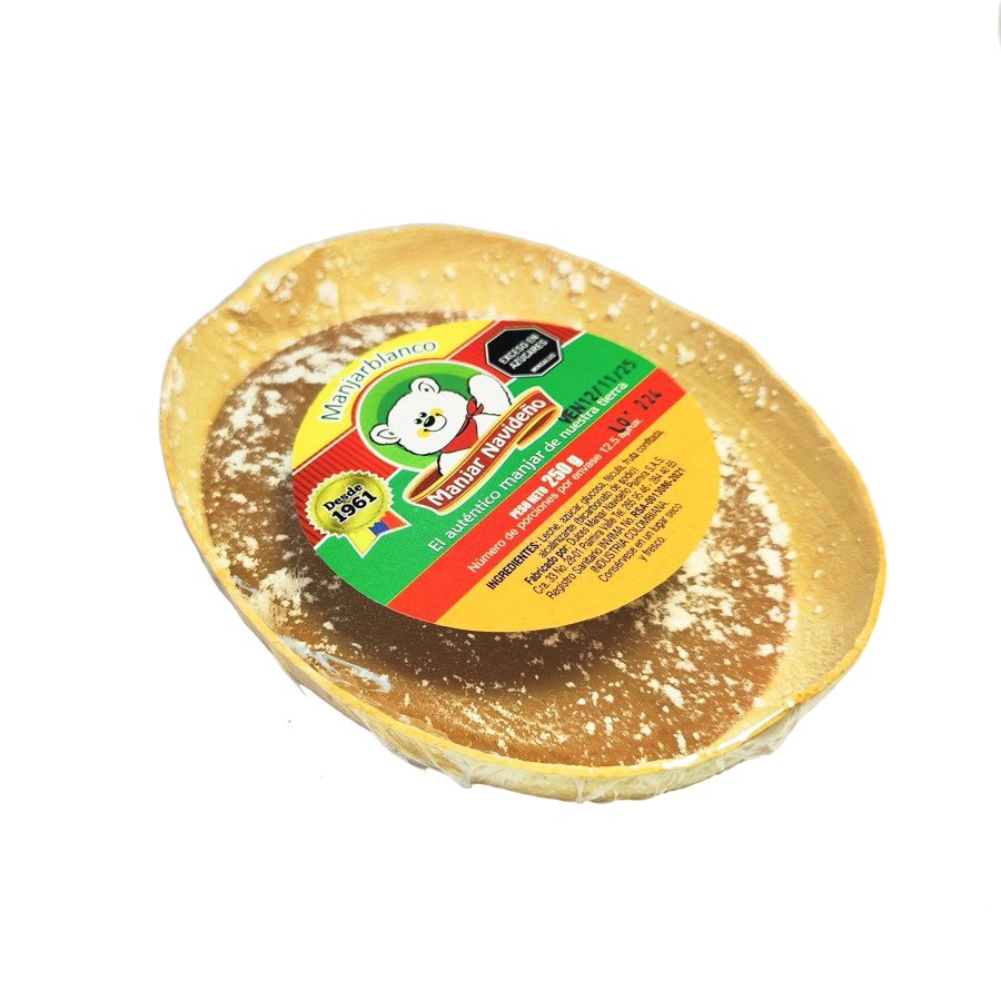 El manjar blanco tradicional, elaborado con ingredientes 100% naturales como leche, azúcar y arroz molido, es una joya de la tradición vallecaucana. Su textura espesa, suave y cremosa, junto con un sabor delicado y equilibrado, resaltan los toques de leche caramelizada que evocan la cocina casera y los sabores auténticos de nuestra tierra.
